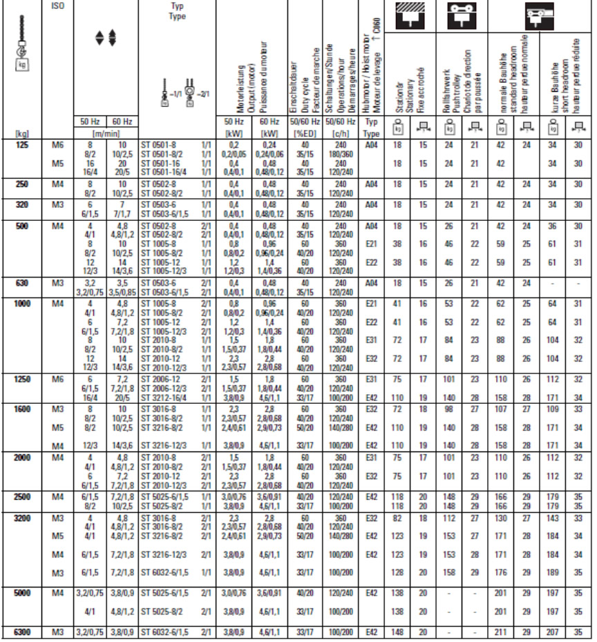 ST環(huán)鏈葫蘆標(biāo)準(zhǔn)參數(shù)